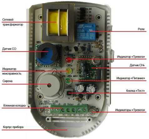 Кнопка «ТЕСТ» предназначена для проверки светового и звукового извещателей, а также для проверки срабатывания клапана отсечки (если клапан подключен к прибору).